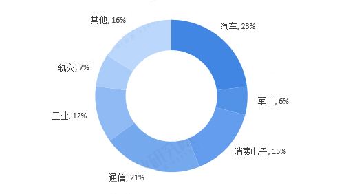目前,连接器主要应用于汽车、通讯、航空航天、工防装备、计算机、工业、家用电器等领域。其中,汽车连接器占比极大,占全球连接器市场的23%左右;通信领域紧随其后,占比21%;消费电子、工业领域占比也在10%以上。