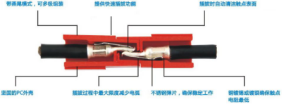 结构特点是:耐环境,卡口式(快速)连接,多键位(防错插),接触体与导线压接连接,(单根取送便于故障处理)。外壳加屏蔽环保证360°电磁干扰屏蔽能力。