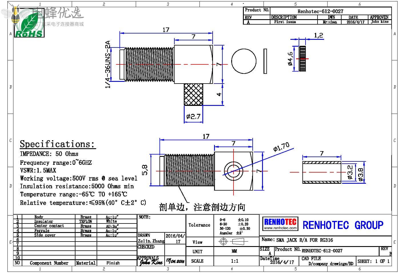 - 阻抗:50 ohm