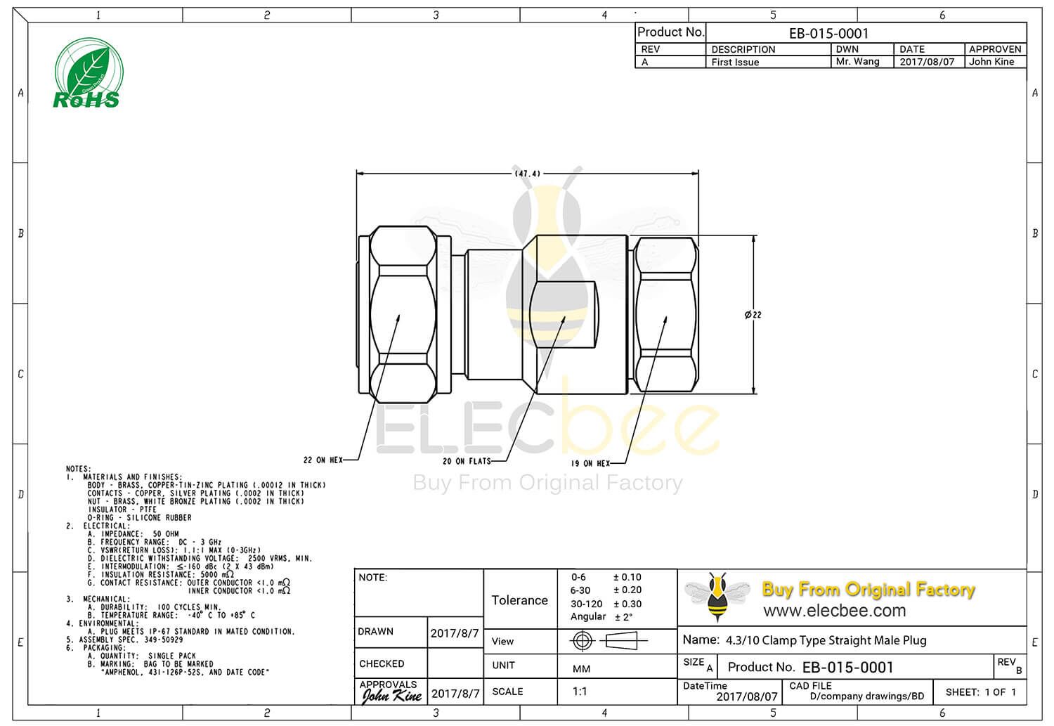 - 4 to 6 GHz 0.025 max. (RL ≥ 32 dB)