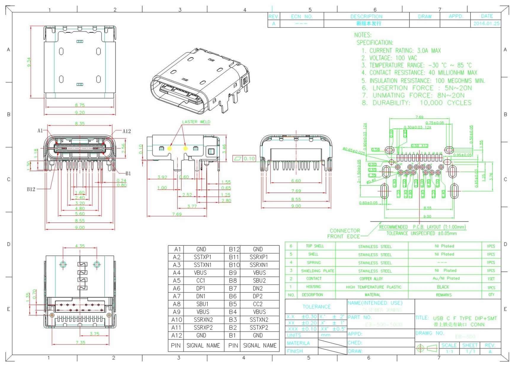 描述:产品特征:USB3.0,TypeC,母座,弯头,前插板,后贴板,PCB板可逆的插头和电缆方向,提供更好的用户体验;较小的连接器尺寸,节省空间;简单快速的使用;高质量原厂出货,30天无忧退换货;来自品牌OEM原厂批发,相同质量,更实惠的价格。应用:工业机械医疗设备硬盘驱动器闪存盘手机/平板