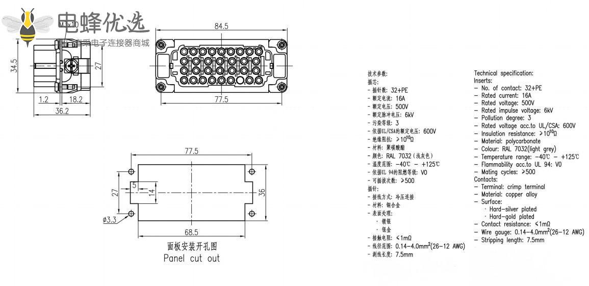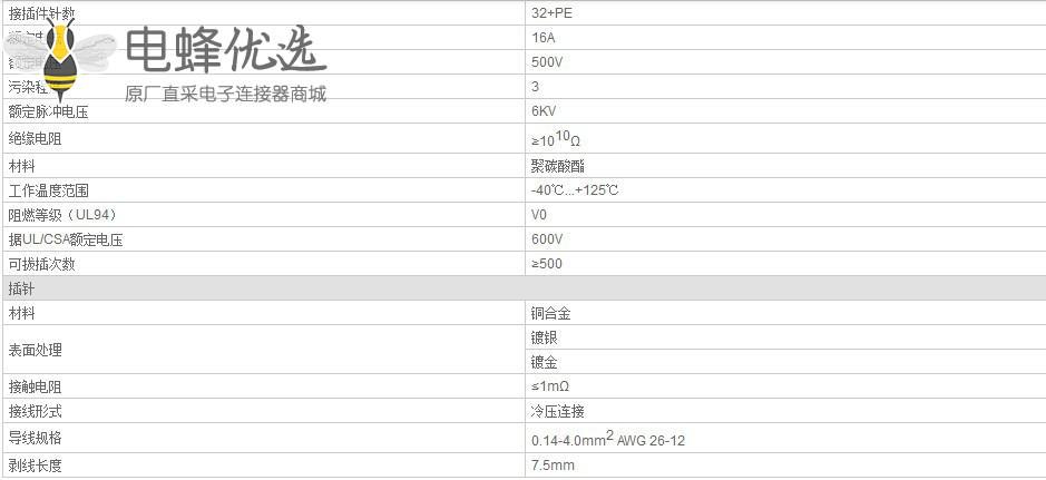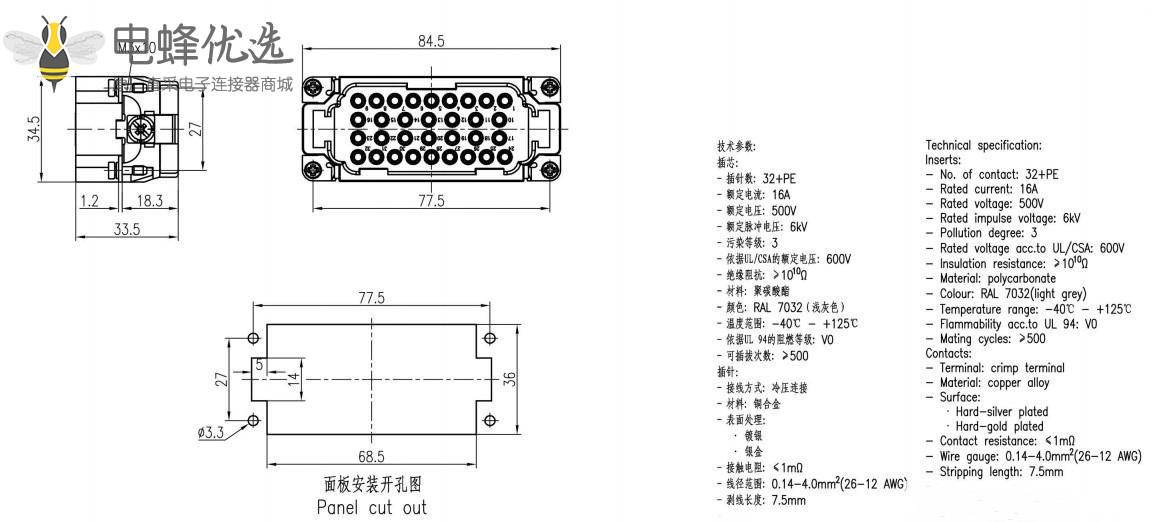 导线规格:0.14~4.0mm²AWG26-12