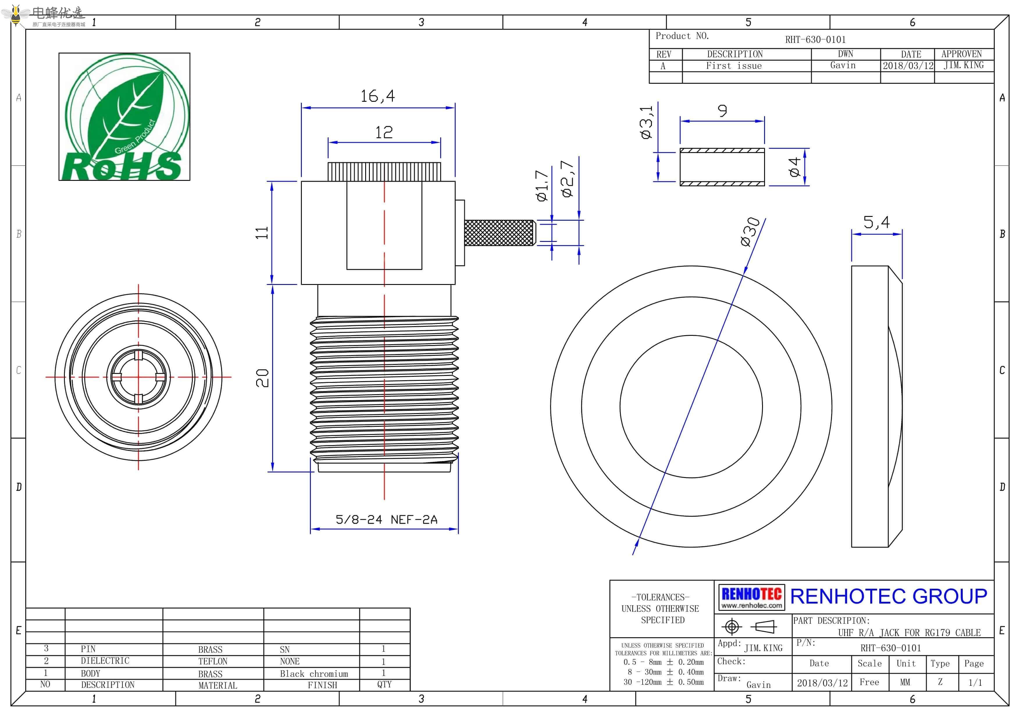 TFE insulators: -65°C ~ +165°C - 耐环境性:除非特殊标注,所有UHF系列连接器均不具有耐环境性能。