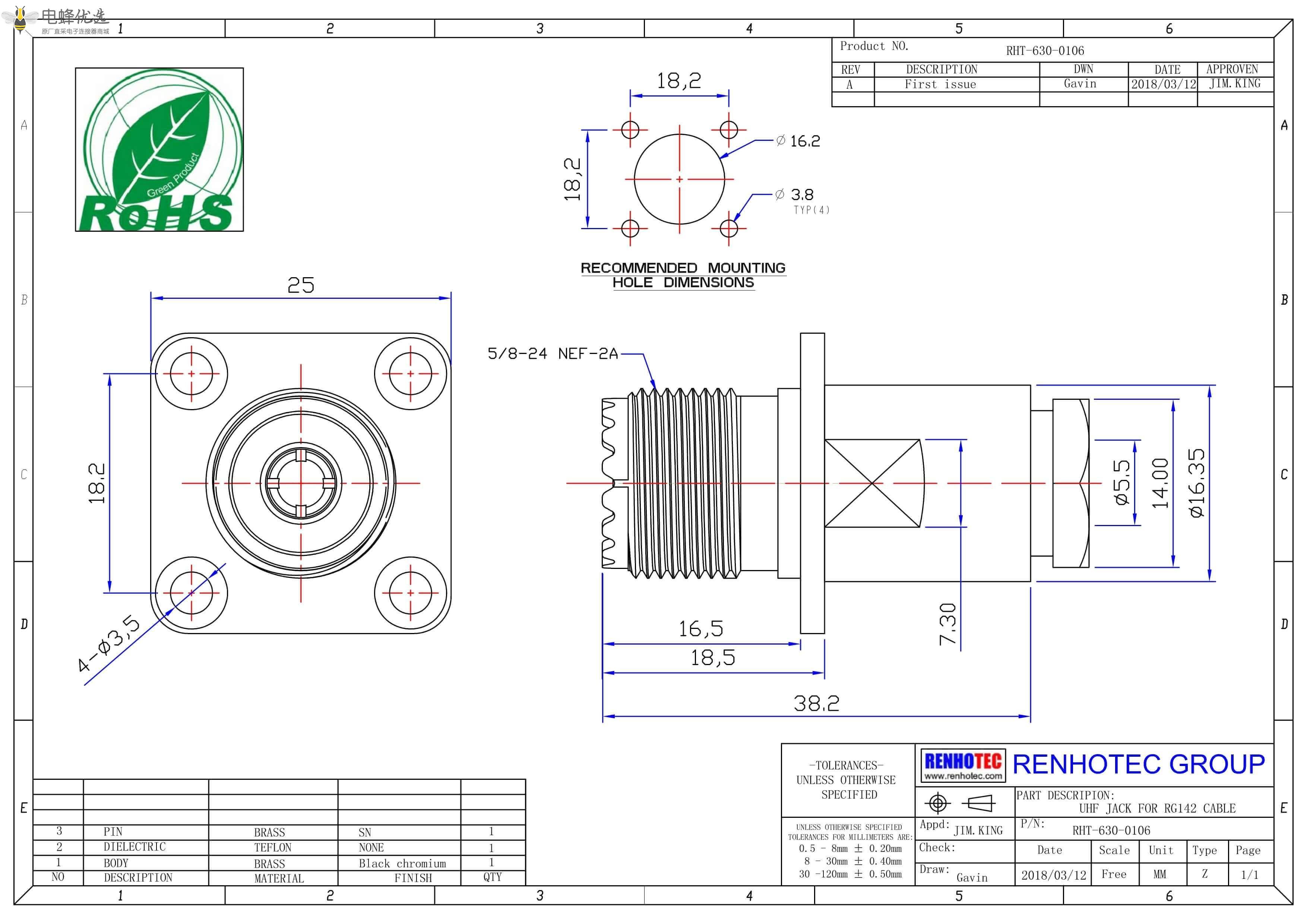 TFE insulators: -65°C ~ +165°C - 耐环境性:除非特殊标注,所有UHF系列连接器均不具有耐环境性能。