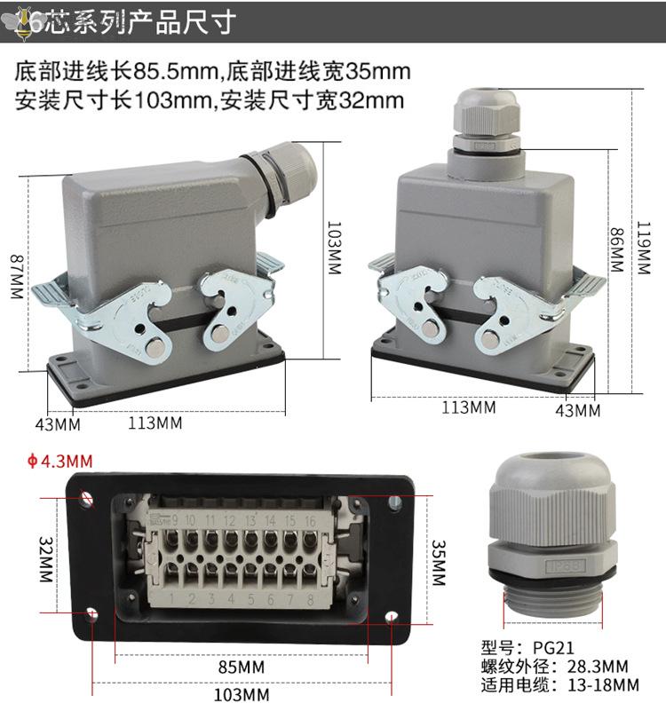 16芯系列产品尺寸: