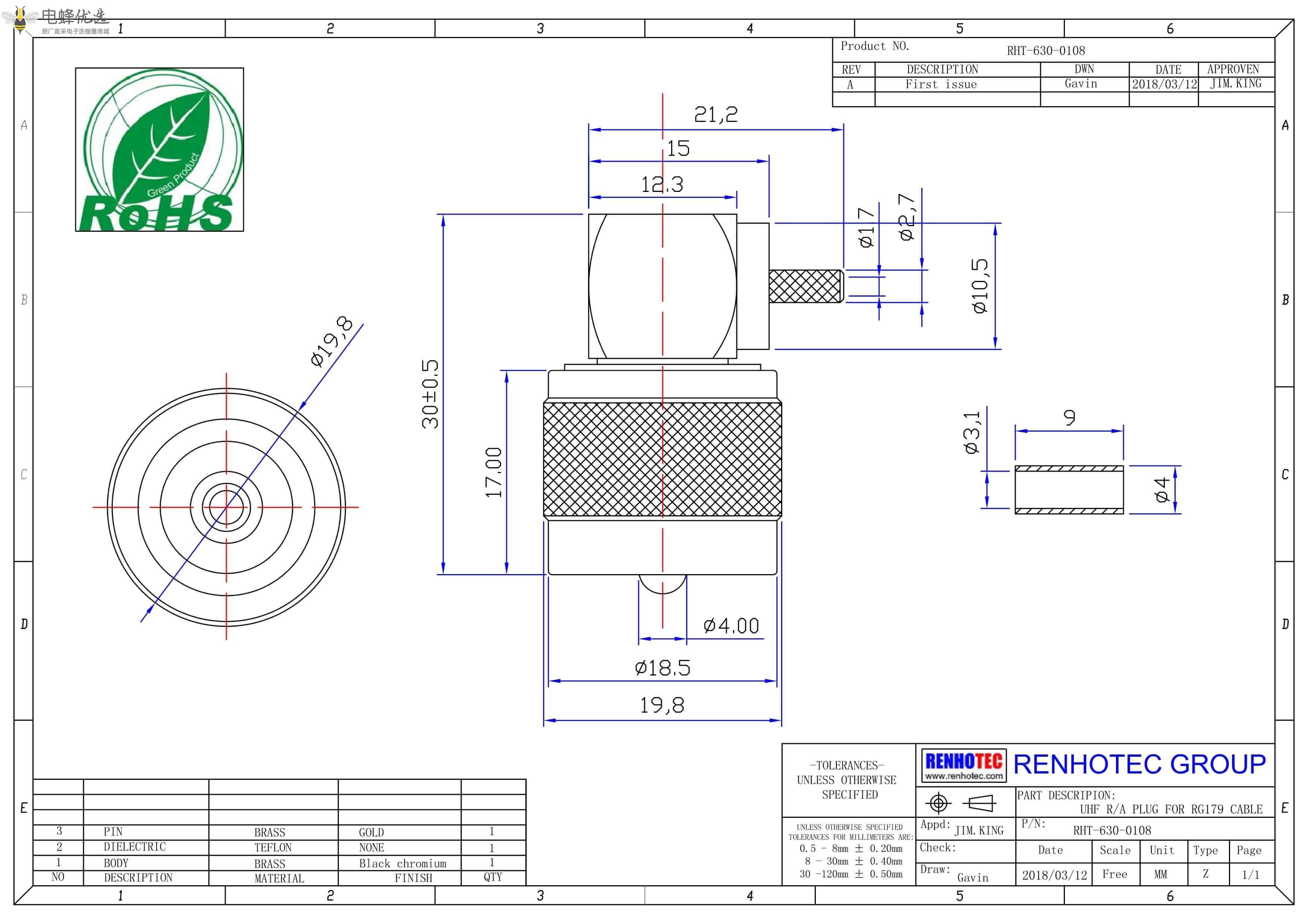 TFE insulators: -65°C ~ +165°C - 耐环境性:除非特殊标注,所有UHF系列连接器均不具有耐环境性能。