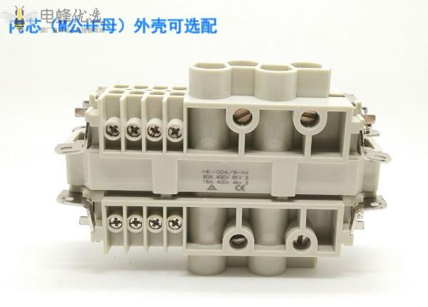 6芯重载连接器双扣顶出侧出80A大电流矩形航空插头插座MF公母针