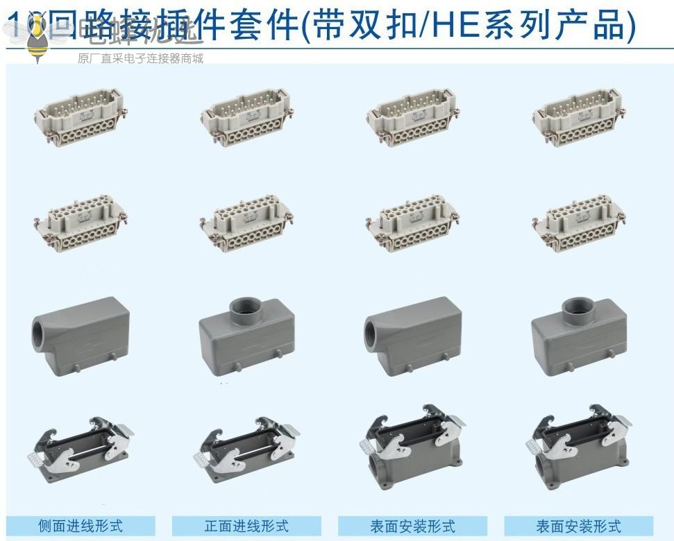 16芯重载连接器H16B双扣下壳PC料内芯厂家批发矩形工业连接器
