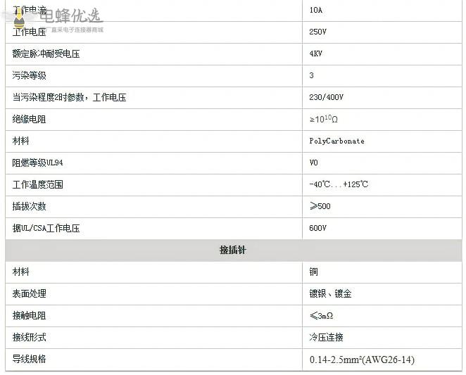 导线规格:0.14-2.5m㎡(AWG26-14)