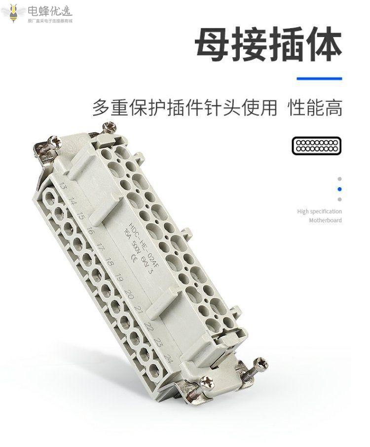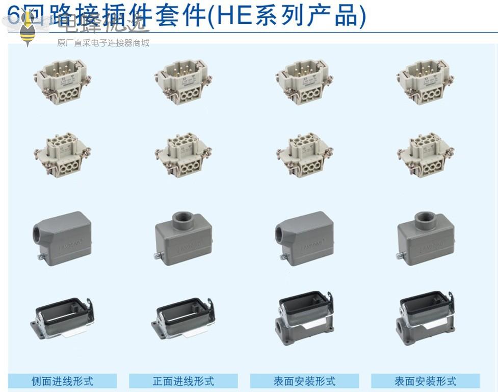 6芯重载连接器厂家批发侧出2耳单扣上壳矩形防水工业连接器