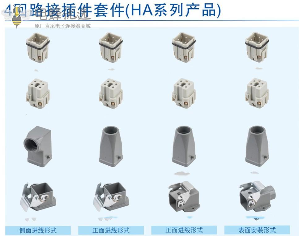 4芯重载连接器厂家批发防水矩形PC料内芯镀银/镀金插针机工业连接器