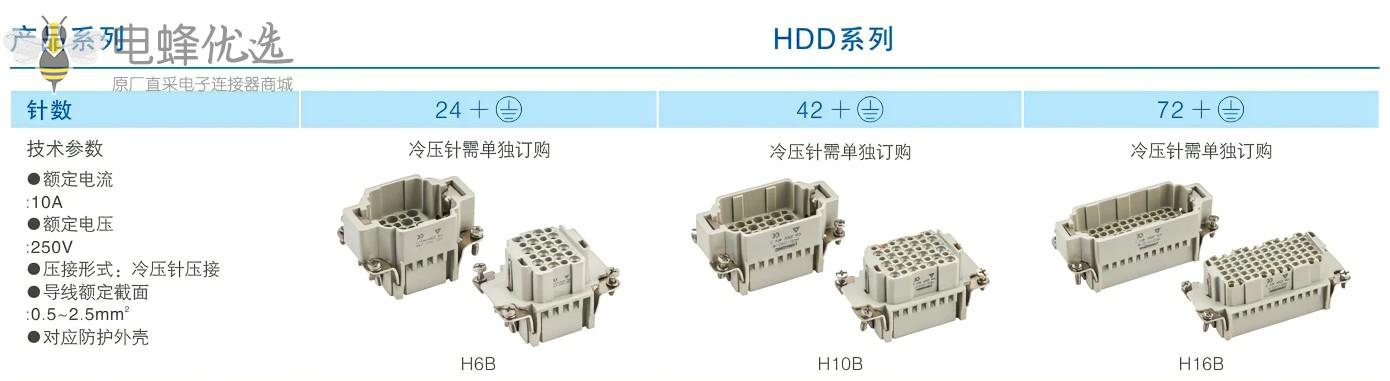 42芯重载连接器HDD塑料铁扣厂家直发公母对接开孔安装工业连接器