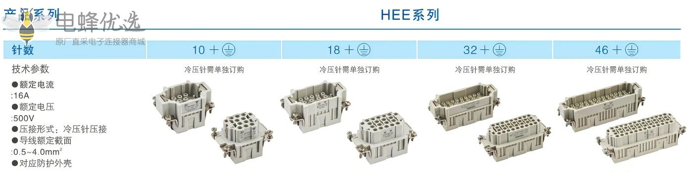 46芯防水重载连接器HEE厂家直销表面安装V0级阻燃镀银防水工业连接器