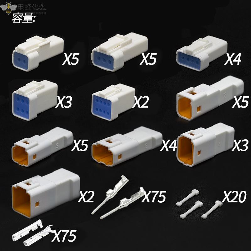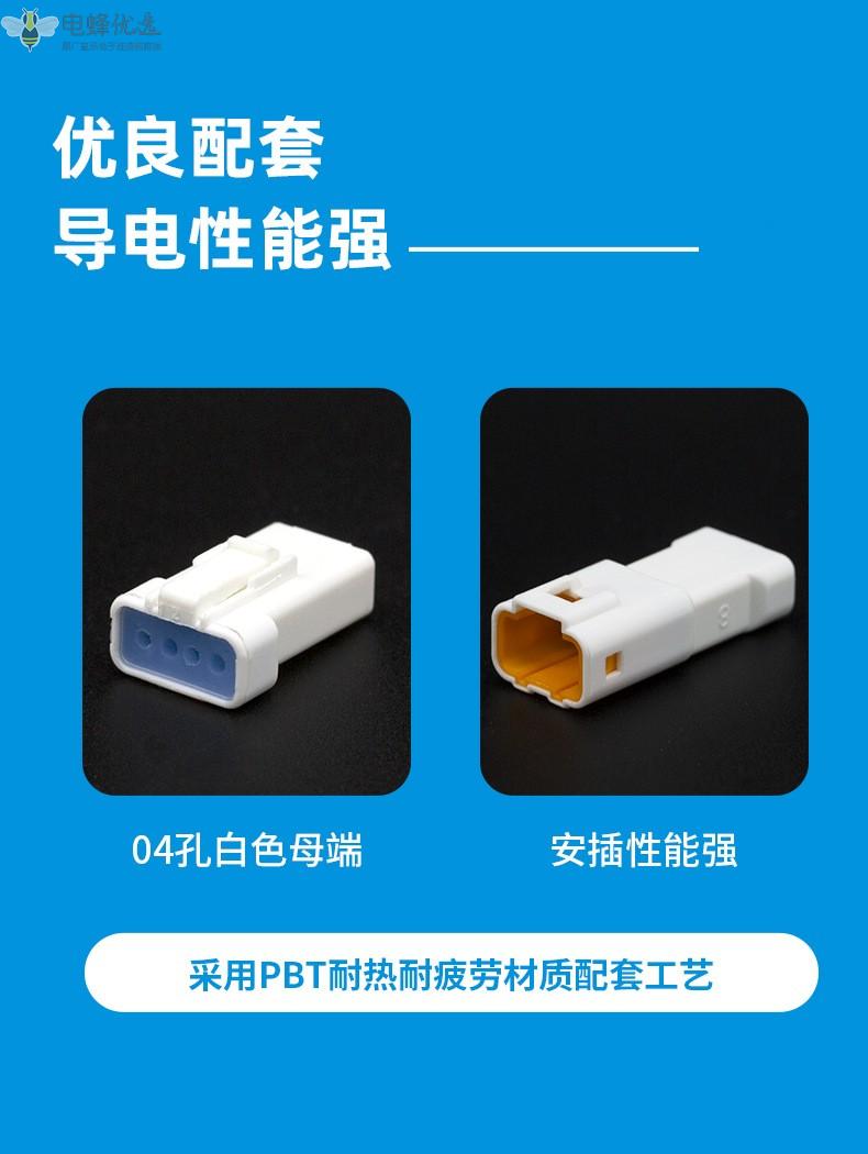 4孔汽车防水连接器灰色防尘高盖线端公母插件PA66材质
