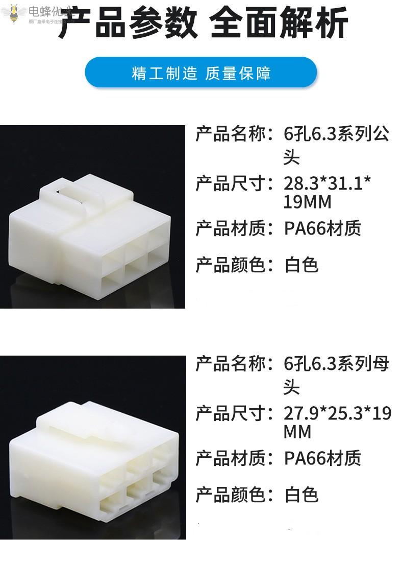 6.3系列6孔汽车连接器汽车接插件摩托电瓶7061-6.3-11公母阻燃对接插头