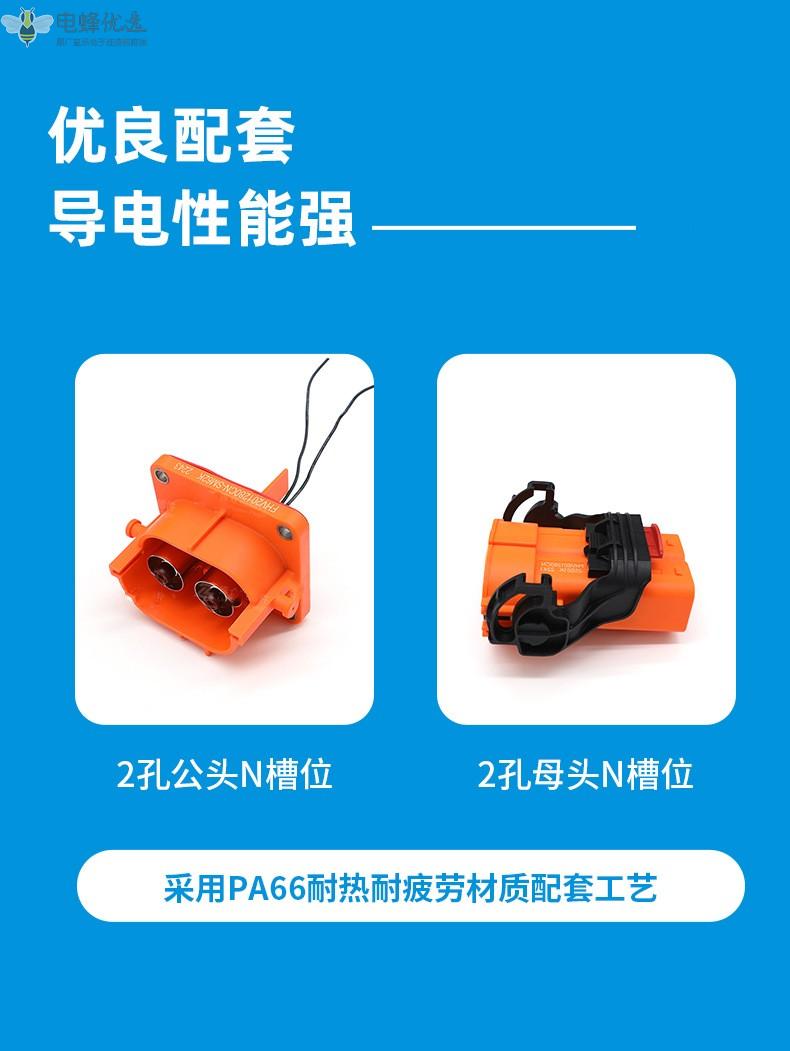 2芯2孔新能源电动汽车高压连接器N槽位防水插头