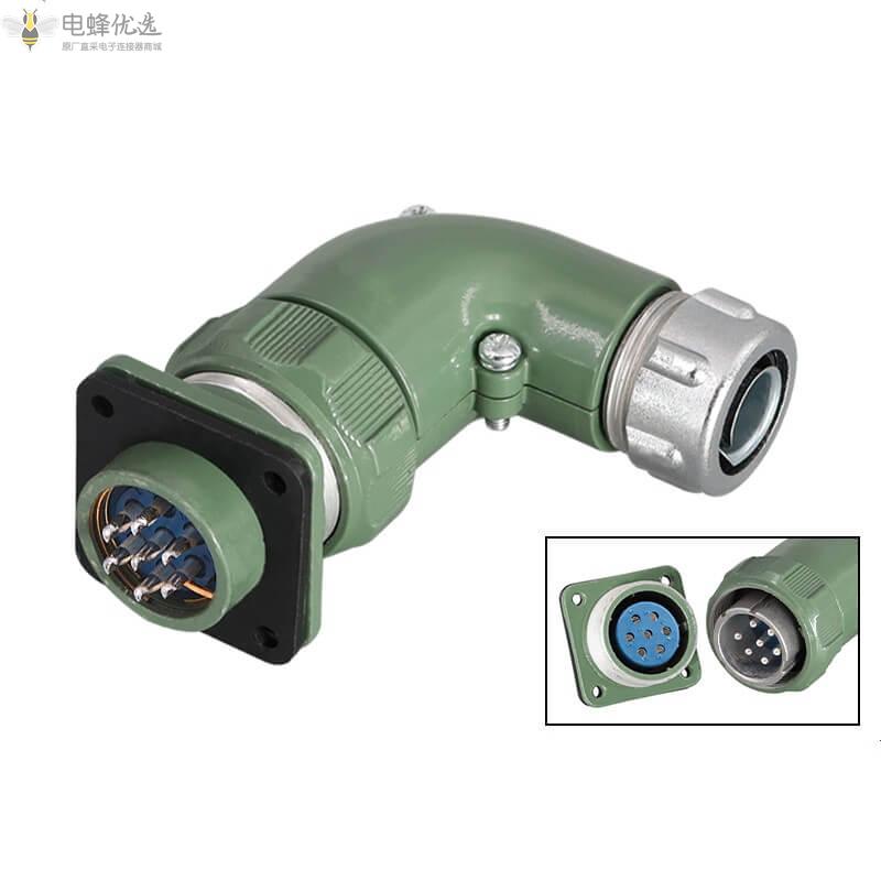 厂家直售7芯弯式YD28反装TR+Z母插座公插头带金属软管25A500V航空连接器
