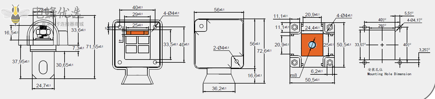 产品型号:DS-FM8-EB-56-4M紫铜鼻