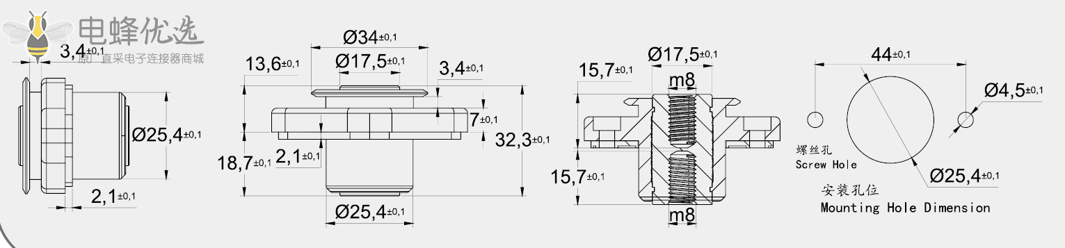 开孔尺寸:φ25,4-φ4,5*2 (44mm)