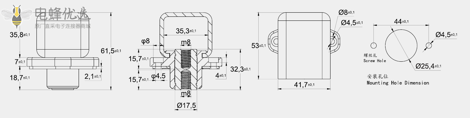 开孔尺寸:φ25,4-φ4,5*2 (44mm)