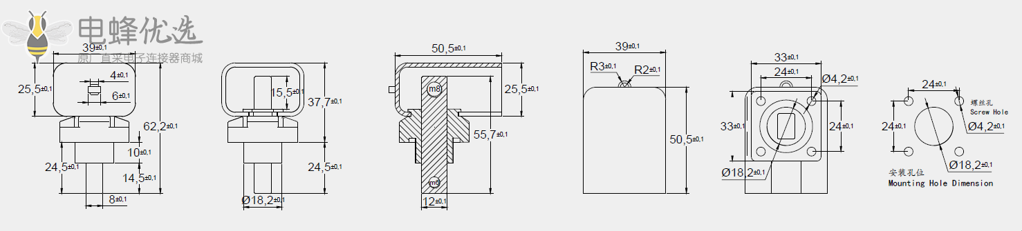 开孔尺寸:φ18,2--φ4,2*4(24*24mm)