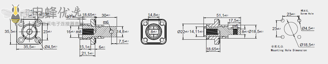 开孔尺寸:φ18,5-φ4,5*4 (23*23mm)