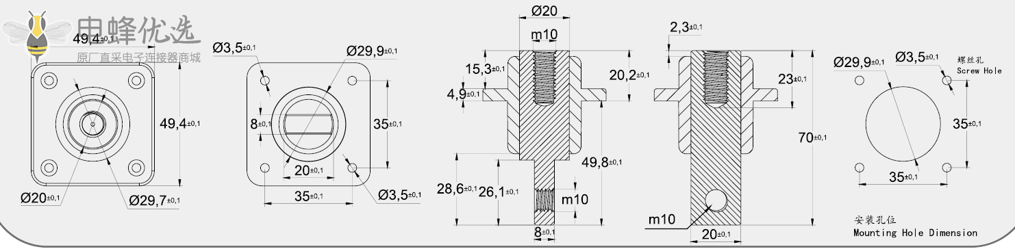 开孔尺寸: φ29,9-φ3,5*4 (35*35mm)