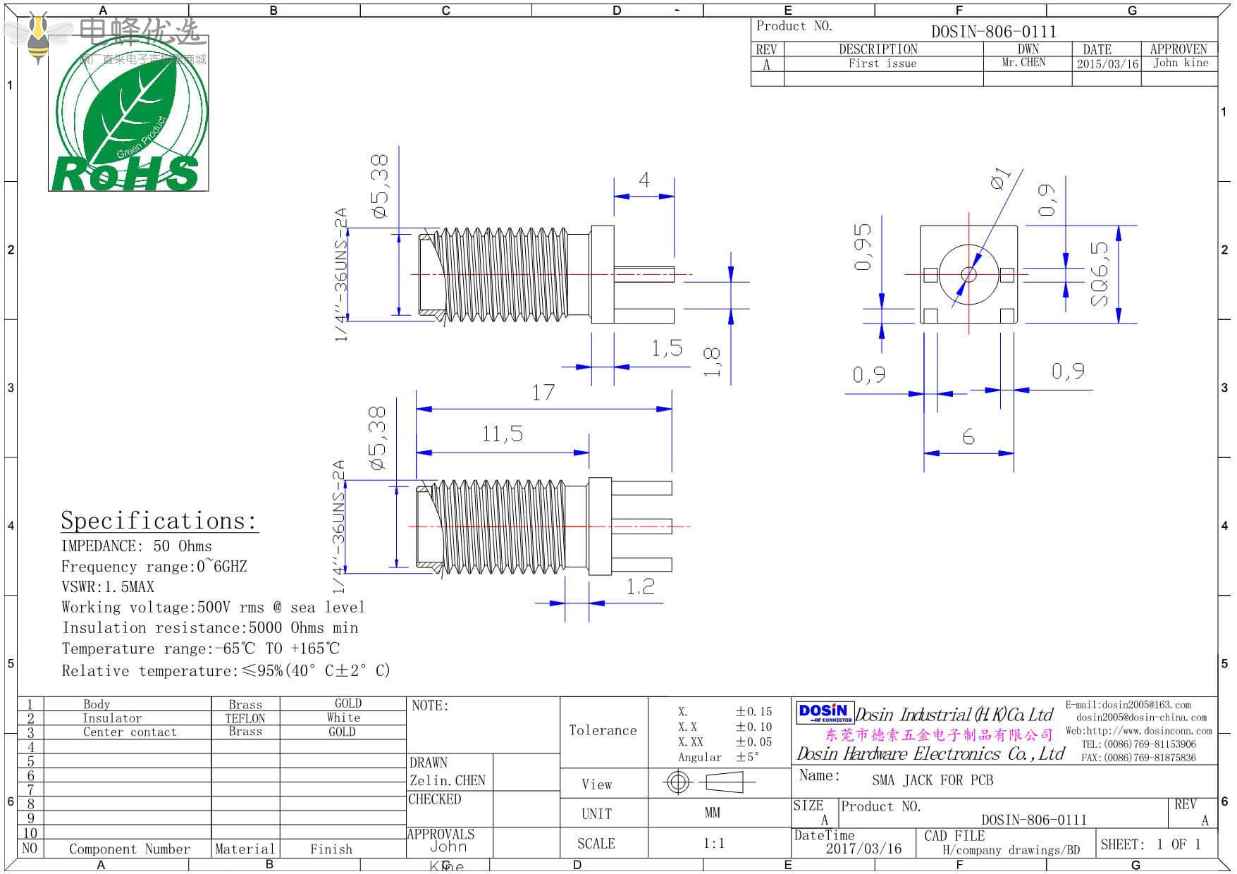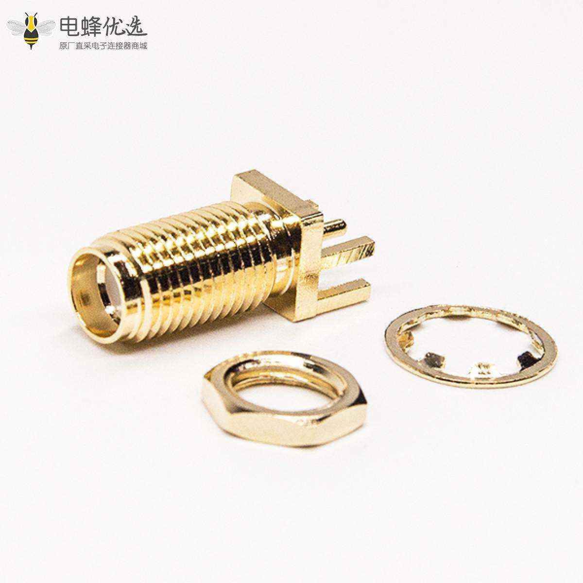- SMA连接器,直式,镀金,母头,180度,卡板式,PCB板,穿墙