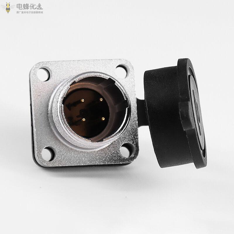 TP16系列航空连接器, 直式,焊线,母插头,公插座,4 孔法兰,4芯