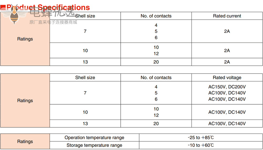 配合周期 接触电阻:15mø 分钟。 1,000次