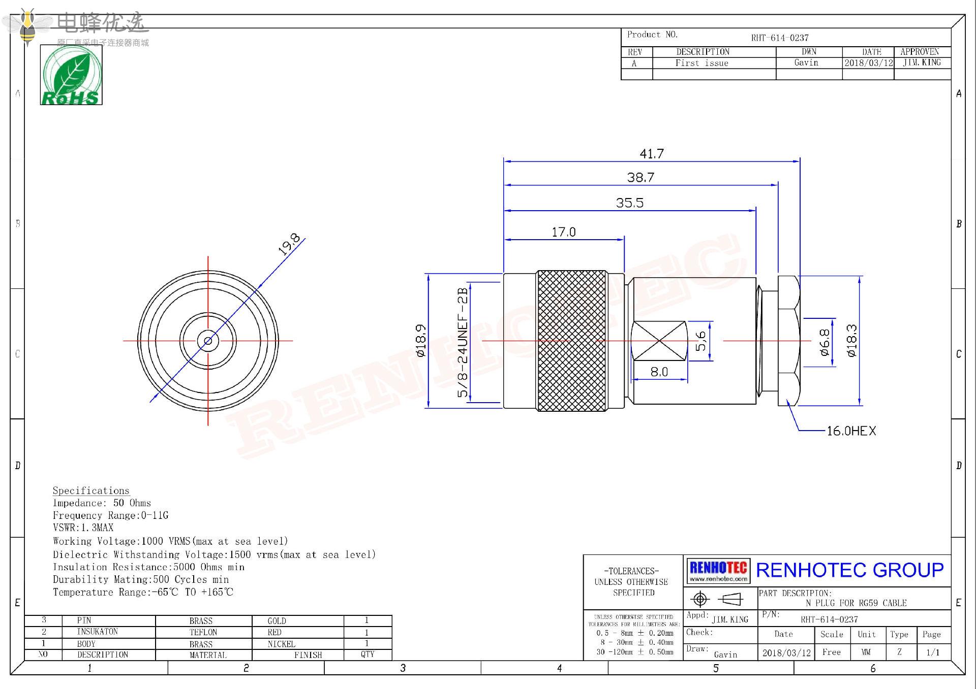 - 阻抗:50 ohm