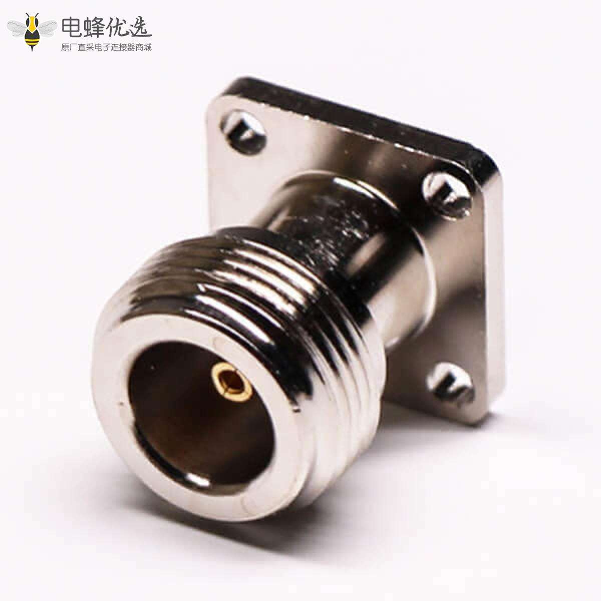 - N型连接器,直式,180度,母头,四孔法兰,面板安装;