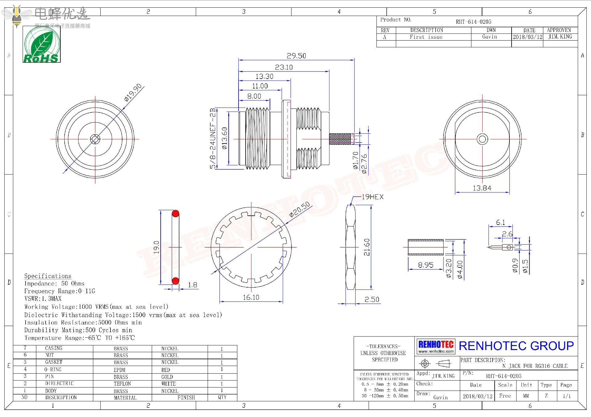 - 阻抗:50 ohm