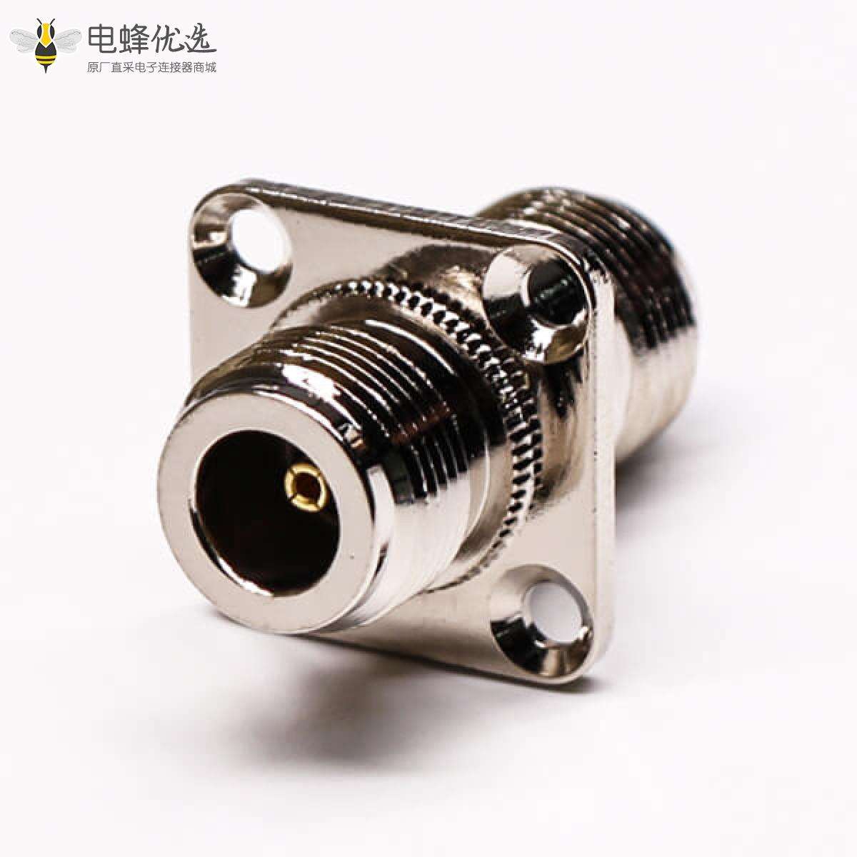 - N型连接器,转接头,直式,四孔法兰,母转母,面板安装;