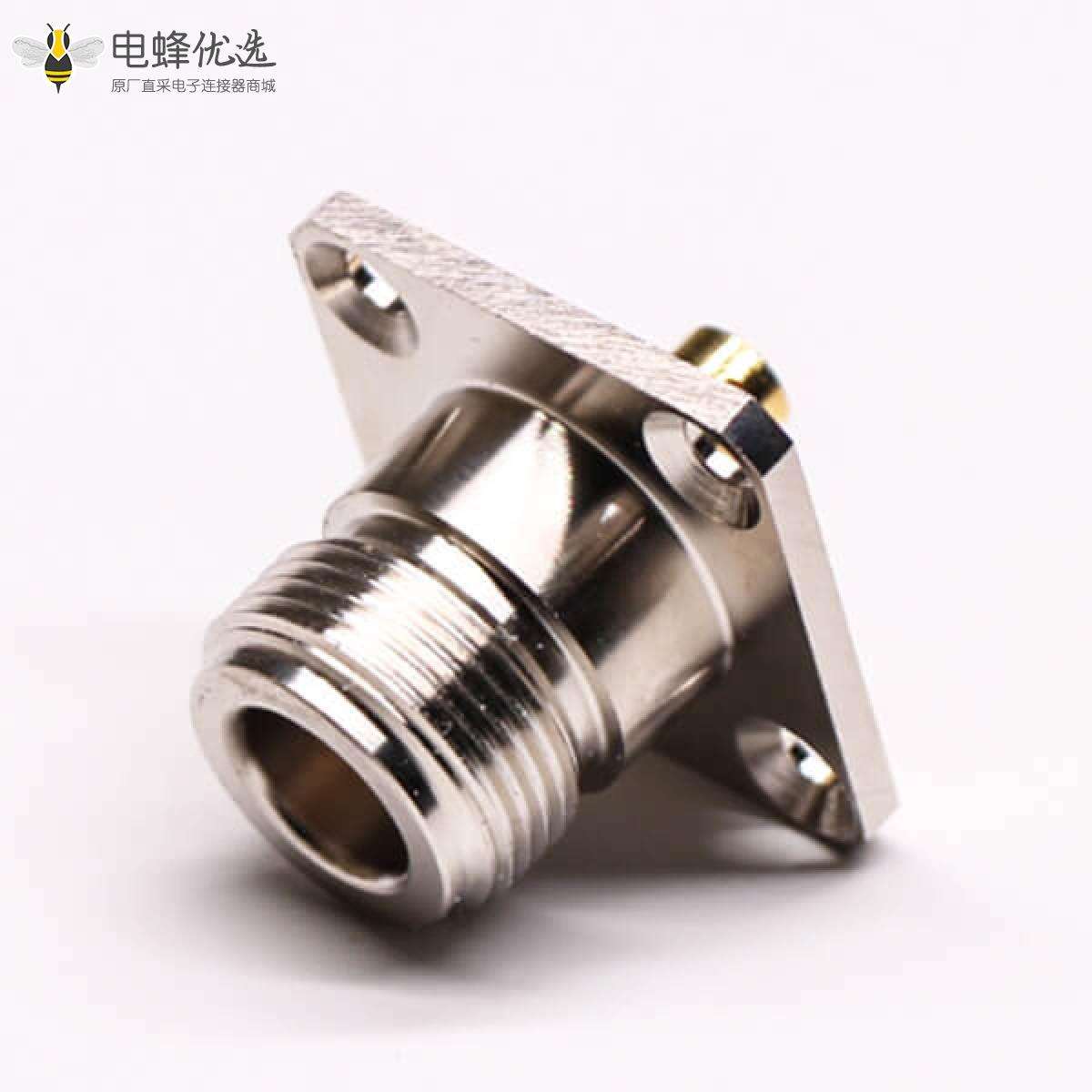 - N型连接器,直式,母头,四孔法兰,焊接,接线,同轴线缆;