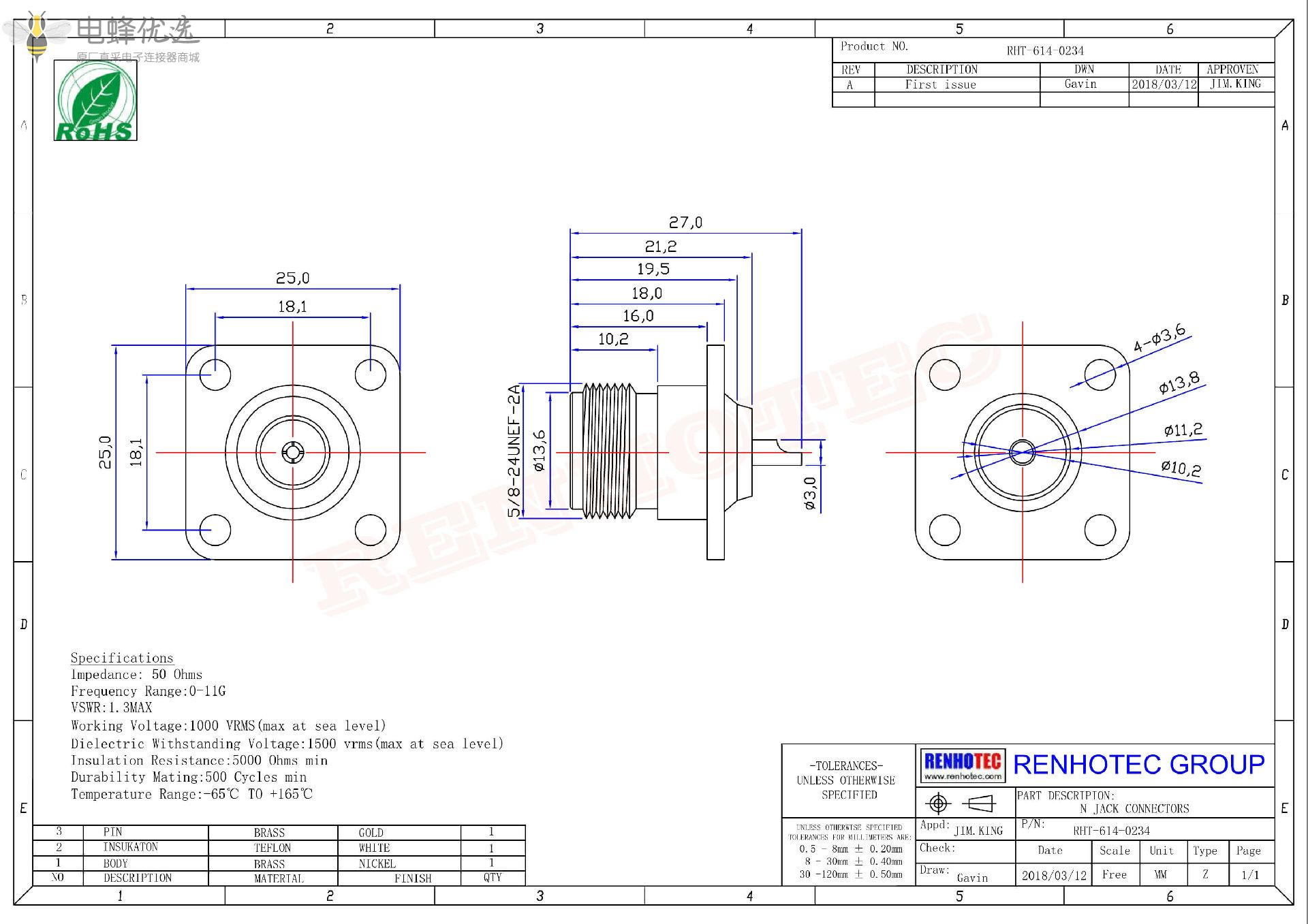 - 阻抗:50 ohm