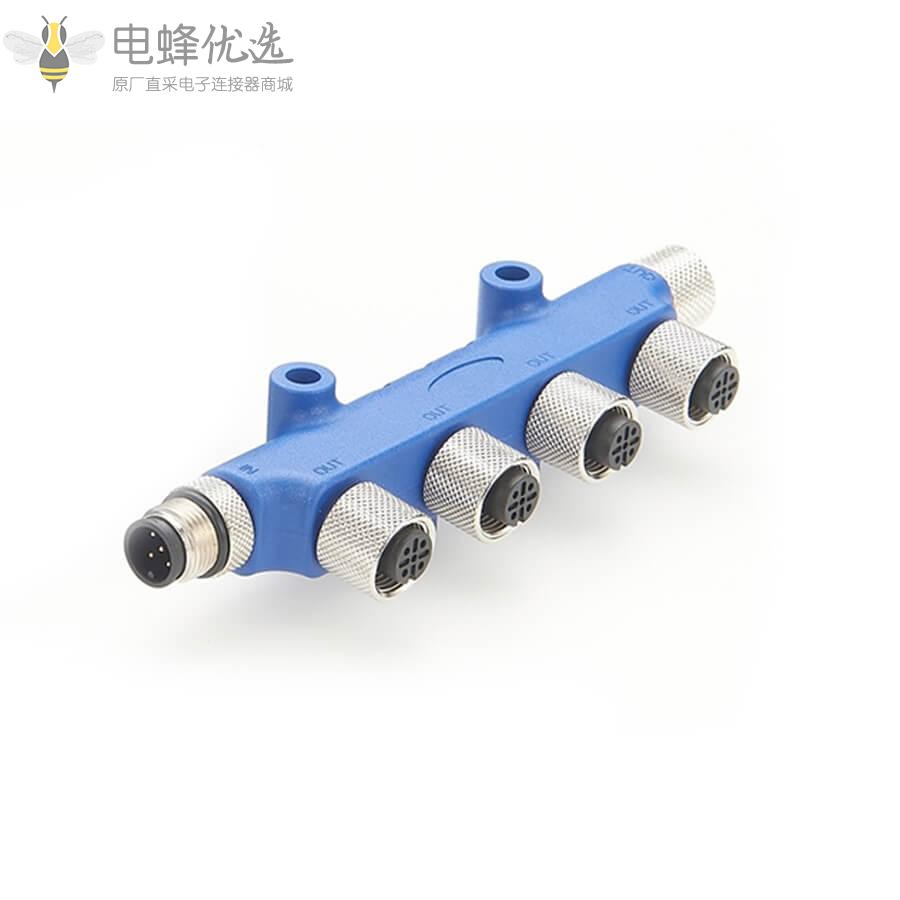 船用级产品,NMEA 2000, 四通多端口,T形连接器,5个M12母5芯转5芯公