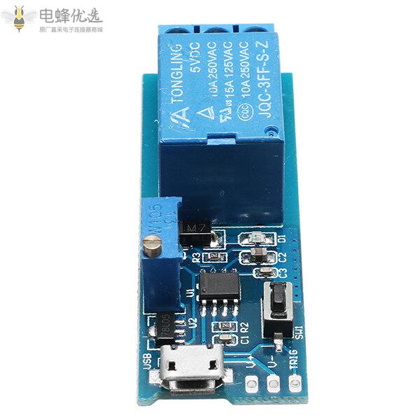 在外部接点(TRIG)启动低脉冲信号,或轻触触发按钮瞬间,继电器和指示灯亮,继电器输出状态为常开(NO)和公共端(COM)导通,常闭( NC)和公共端(COM)故障开路,经过0-24秒(此时间可根据您的需要调整)分钟后继电器断开,继电器恢复到触发前的状态。
