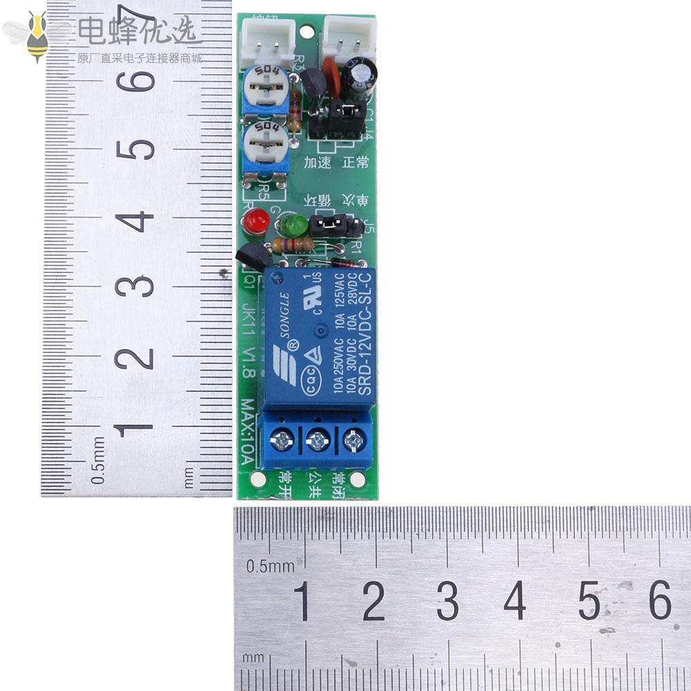 - 延迟时间从 0.1 秒到 100 秒可调。 板上的可调电阻顺时针时间更长,逆时针时间更短。
