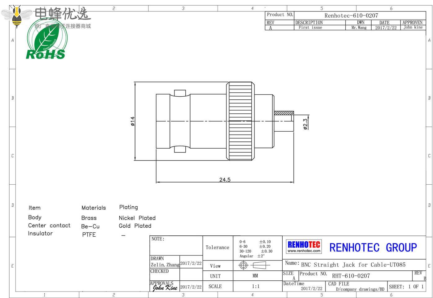 - 中心接触电阻:≦ 1.5 mΩ (Milliohms max.)