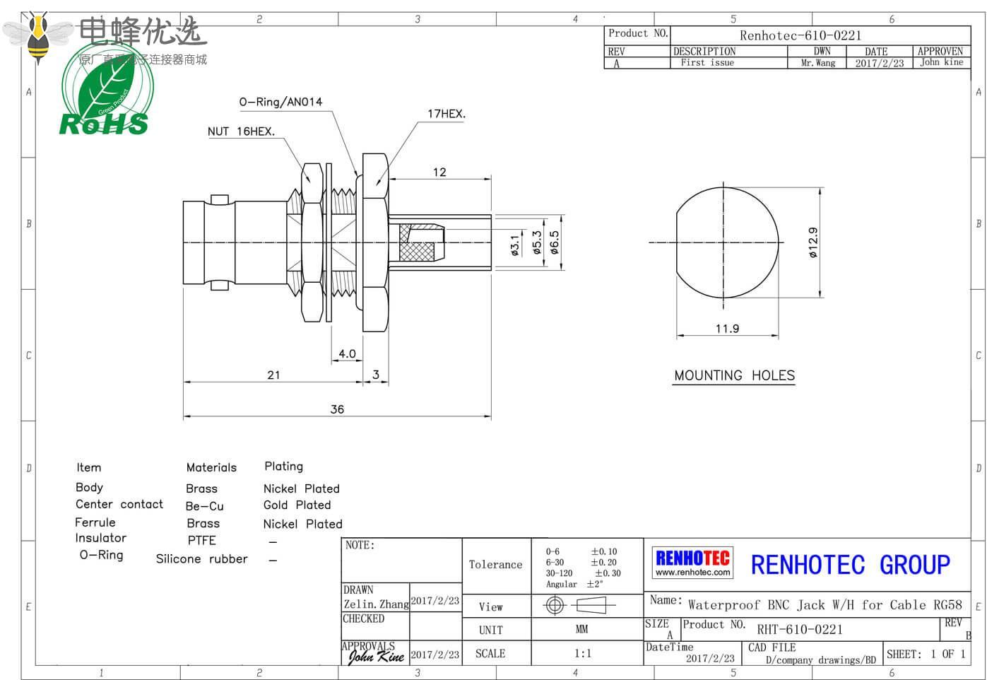 - 中心接触电阻:≦ 1.5 mΩ (Milliohms max.)