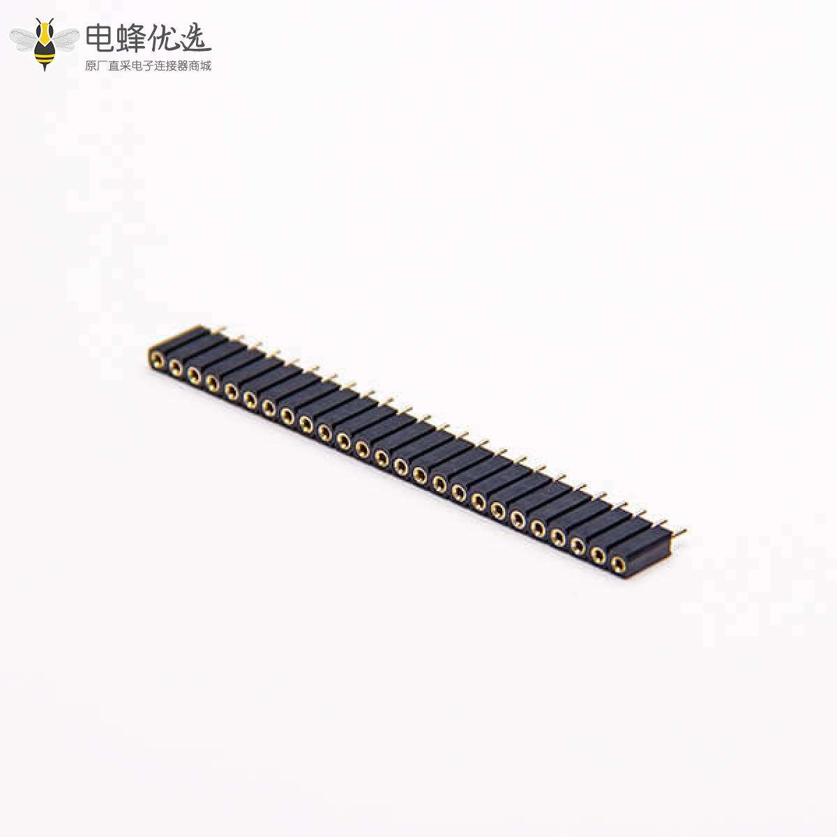 - 排母连接器,母头,圆孔,直式,180度,25pin,单排, DIP,间距2.54mm;