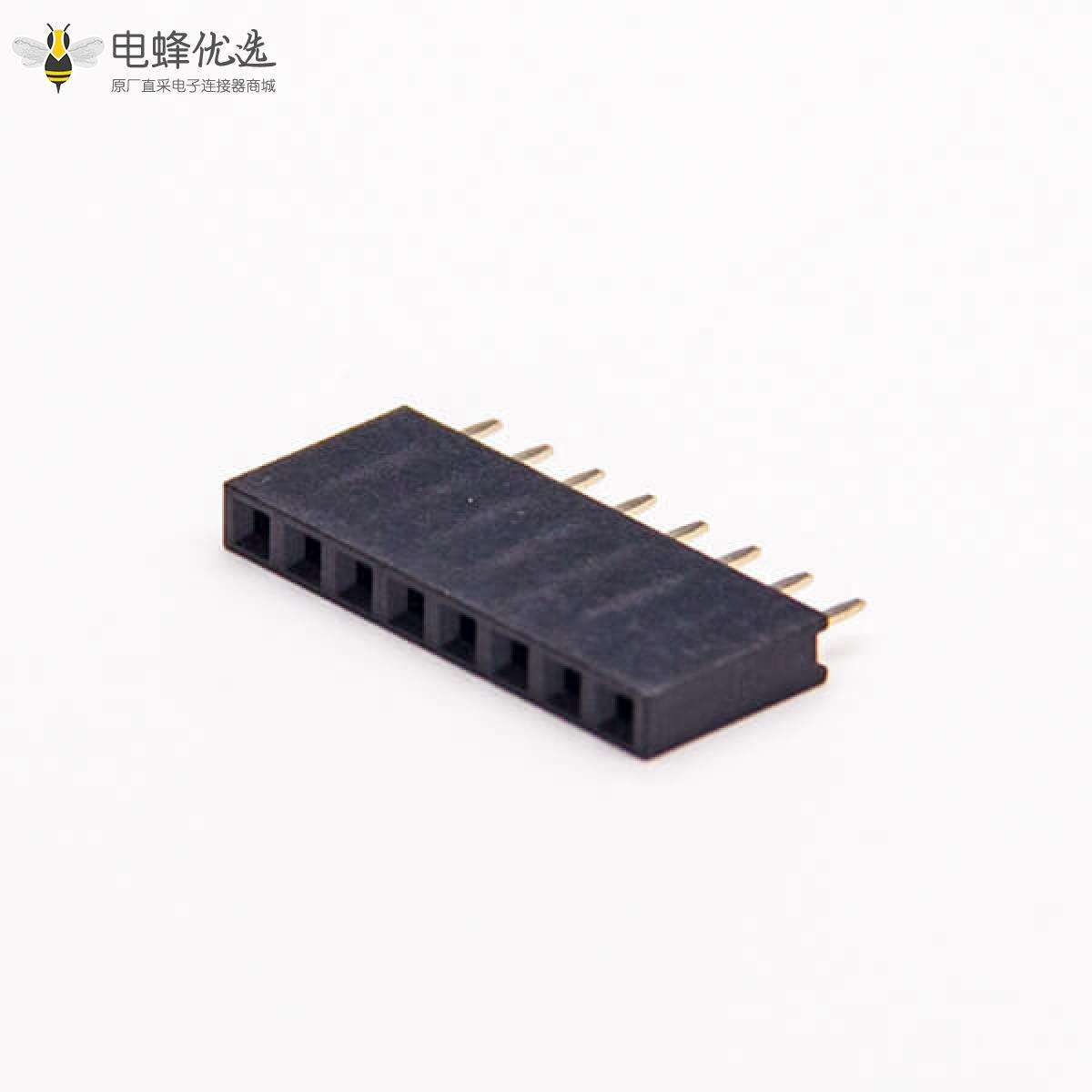 - 排母连接器,母头,直式,180度,8pin,单排, DIP,间距2.54mm,插板;