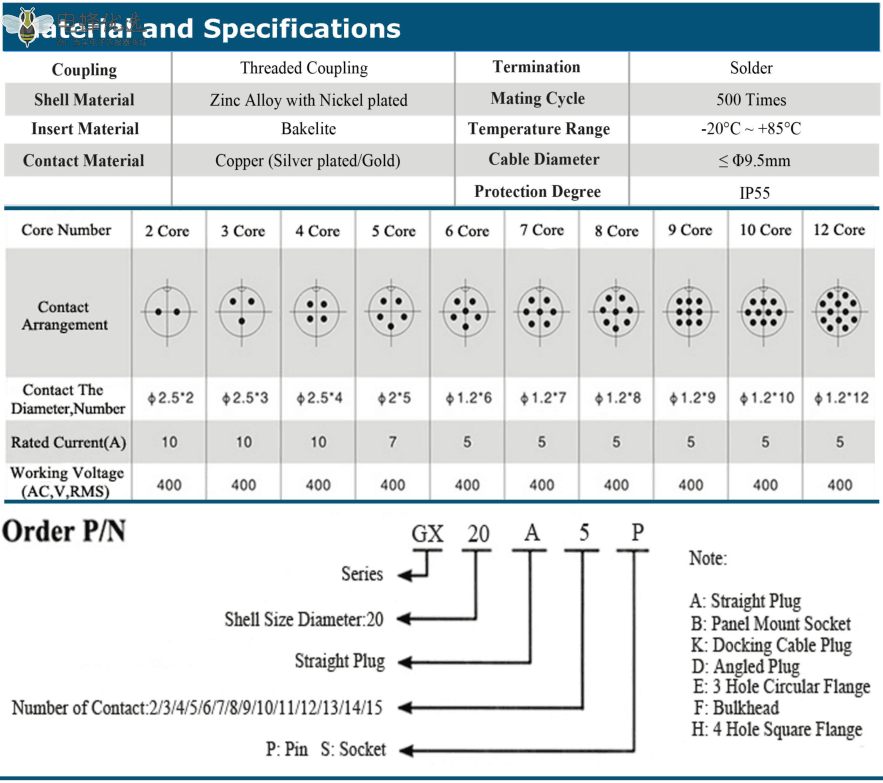 - GX20,常规款,插头/插座,前锁板,3芯,公/母,直的,面板/接线;