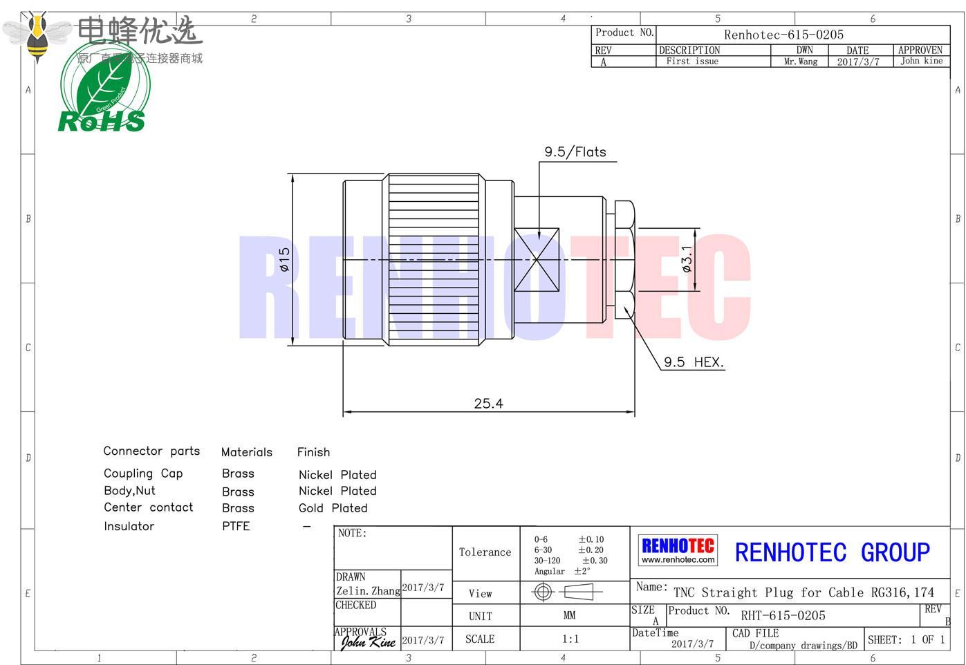 - 同轴线缆,公头,直式,螺母锁紧,tnc连接器,RG316,RG174;