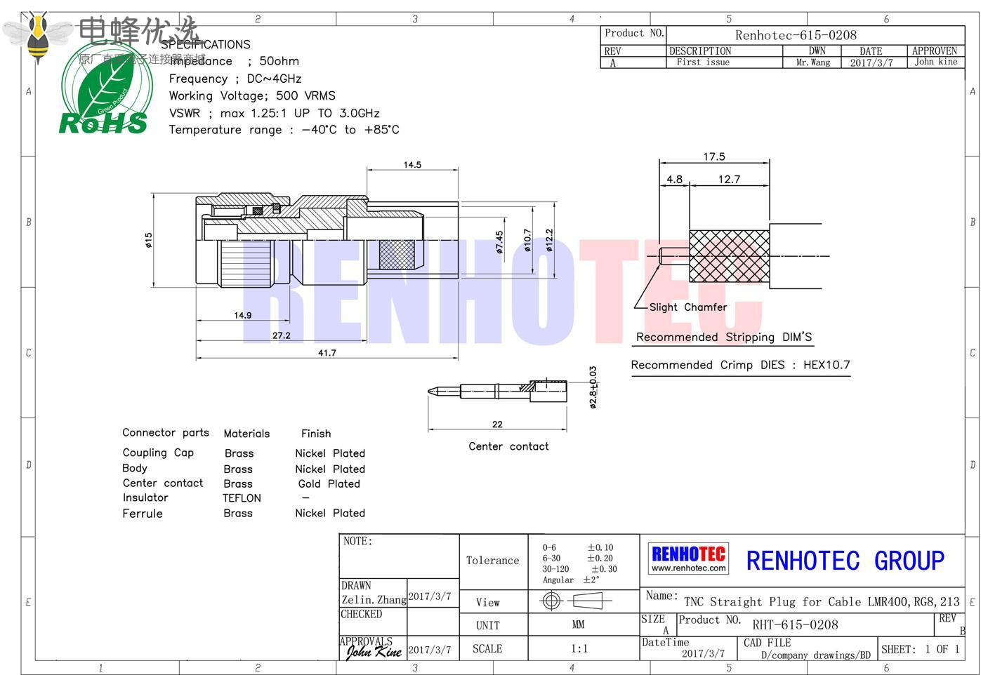 - 同轴线缆,公头,直式,压接,tnc连接器,RG8,RG213,LMR400;