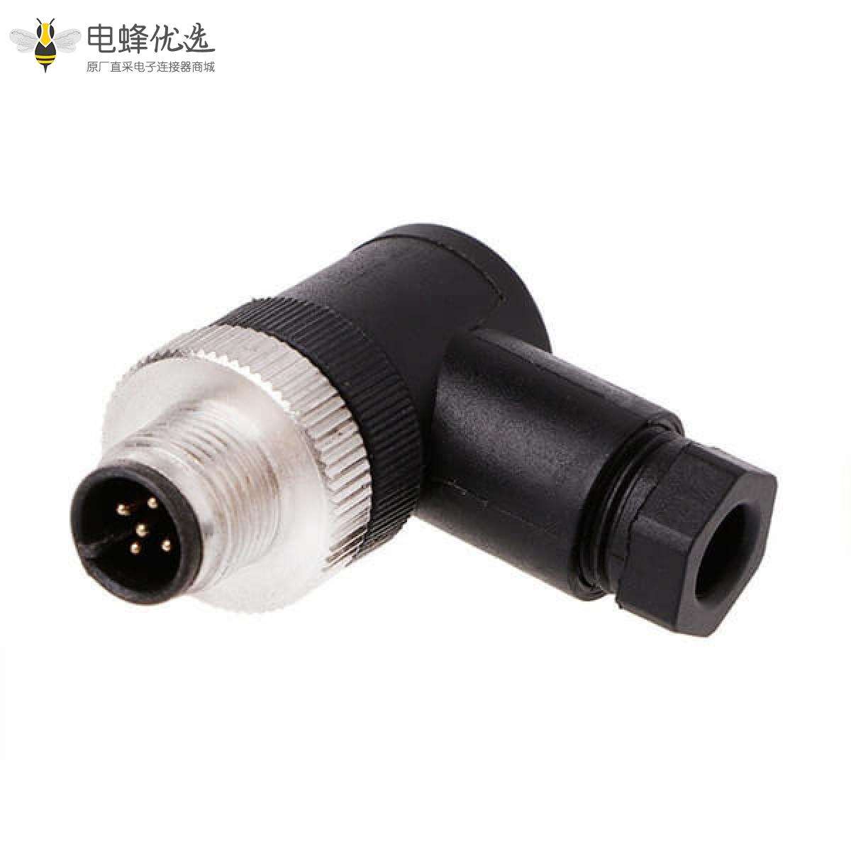 M12,A 编码,现场组装式,4芯,公,弯的,螺丝锁线,不带屏蔽;