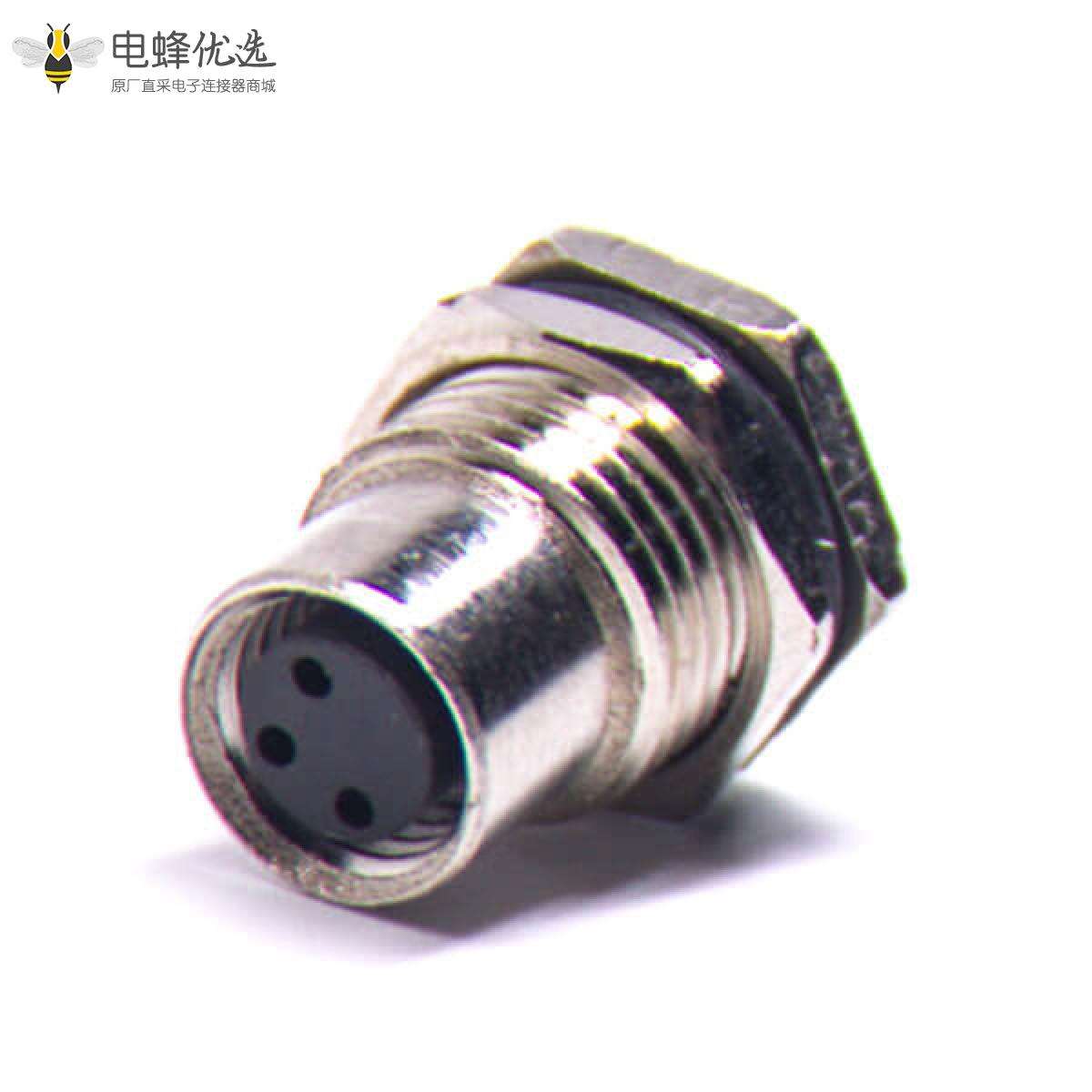 M8,3芯,A编码,板端插座,母,前锁板,直的,插板,不带屏蔽 ;