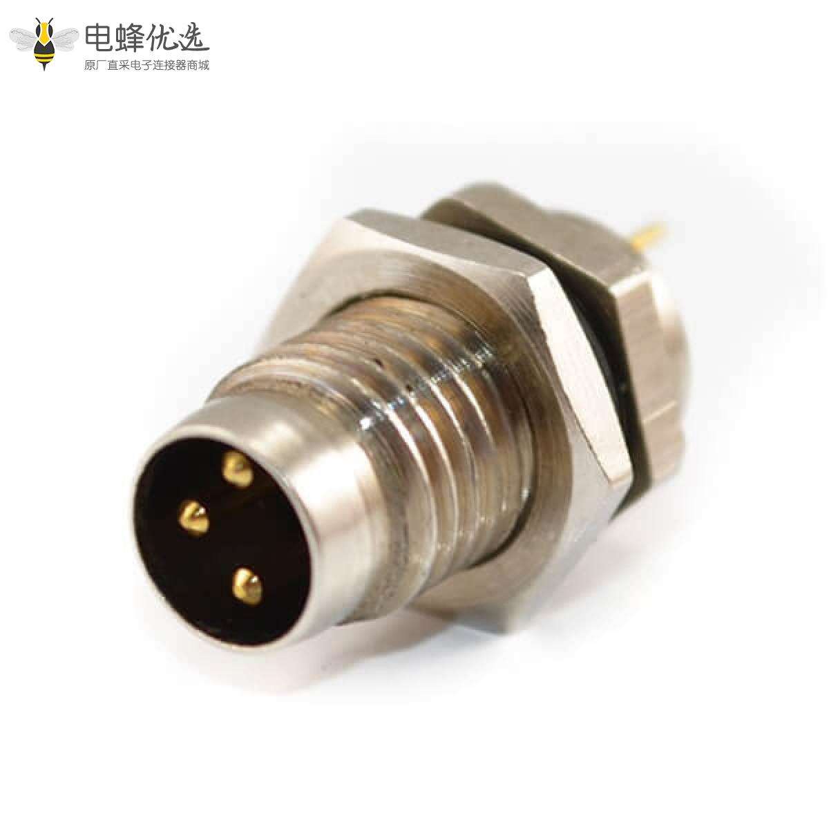 M8,3芯,A编码,板端插座,公,前锁板,直的,插板,不带屏蔽 ;