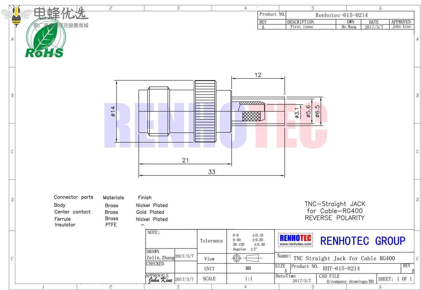 - 高质量原厂出货,30天无忧退换货,产品依照 MIL-C-39012国际标准生产;